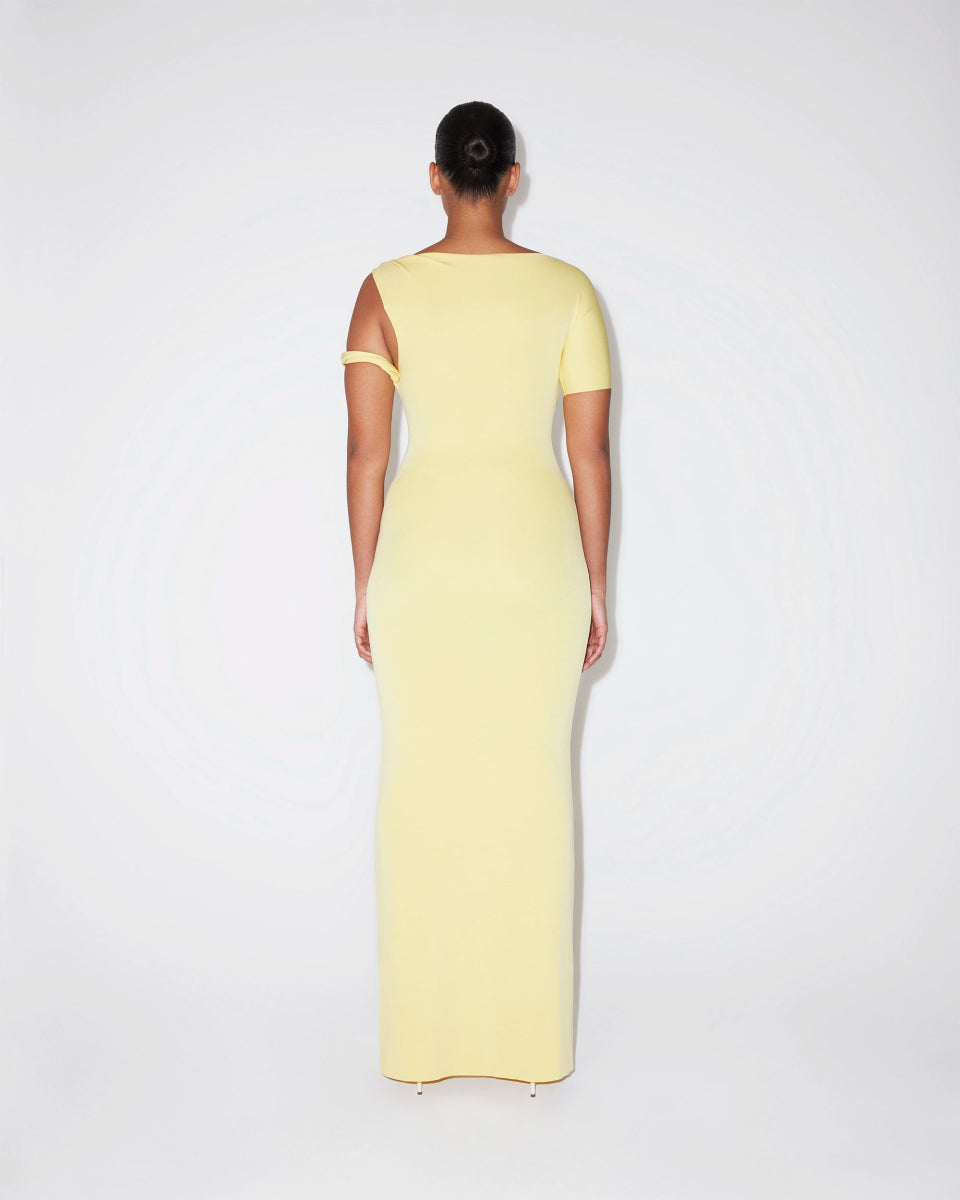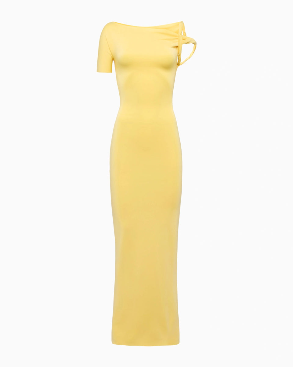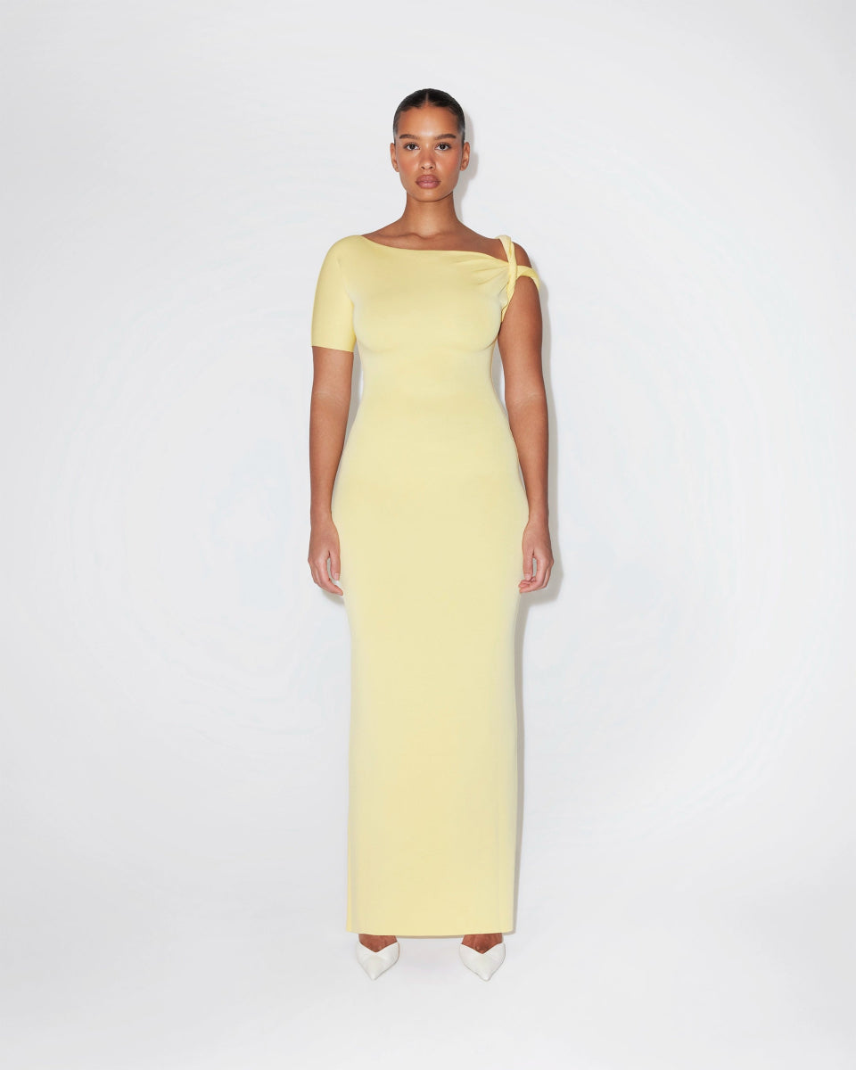 Sueded Stretch Twist Maxi Dress | Butter Yellow