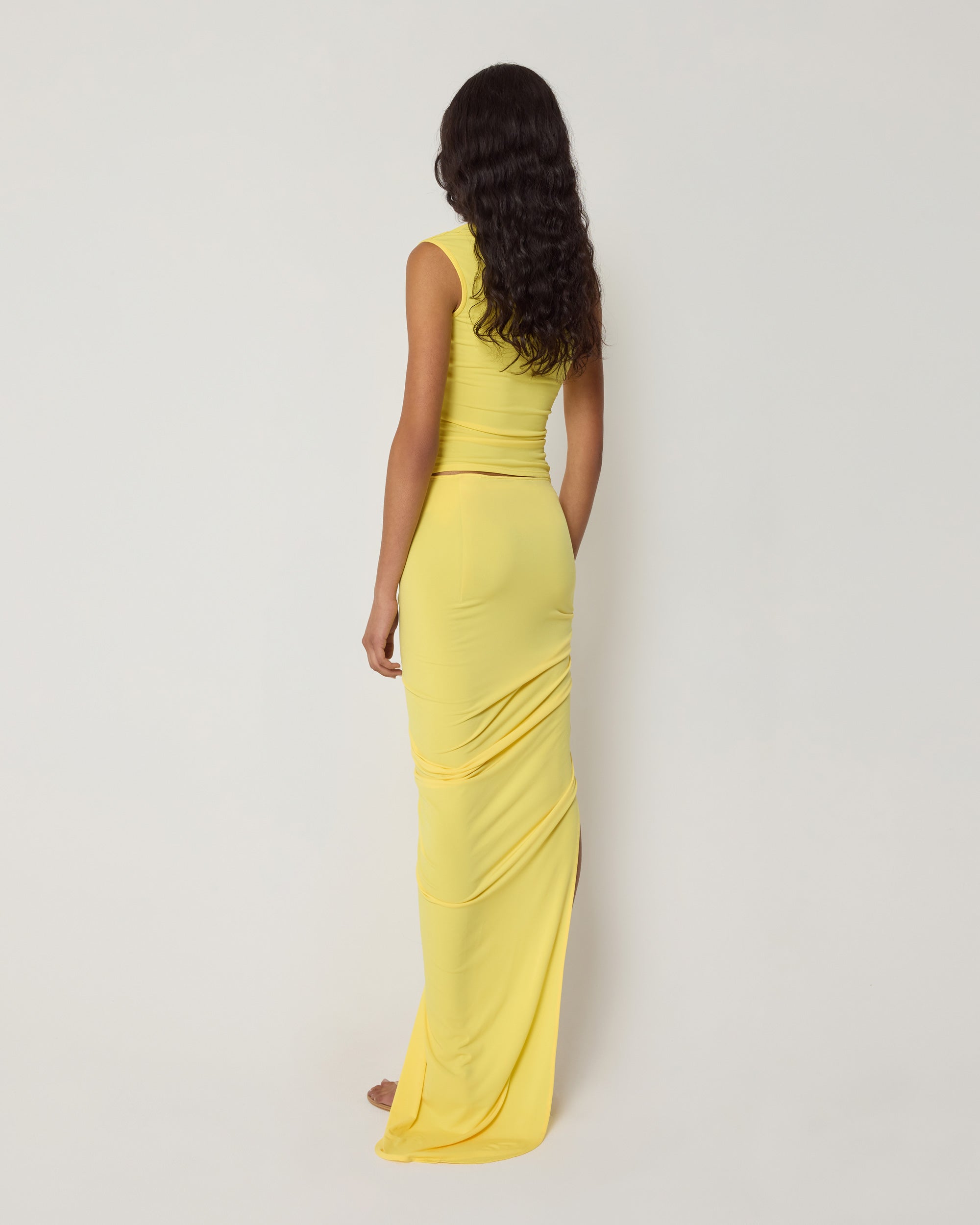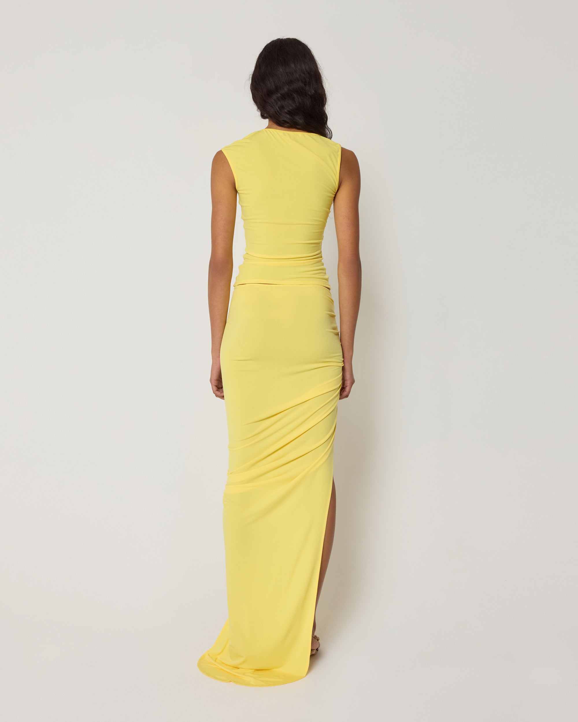 Designed in collaboration with Atlein, this tank top features an asymmetrical neckline. It is made from a matte, stretch jersey with a draping effect.