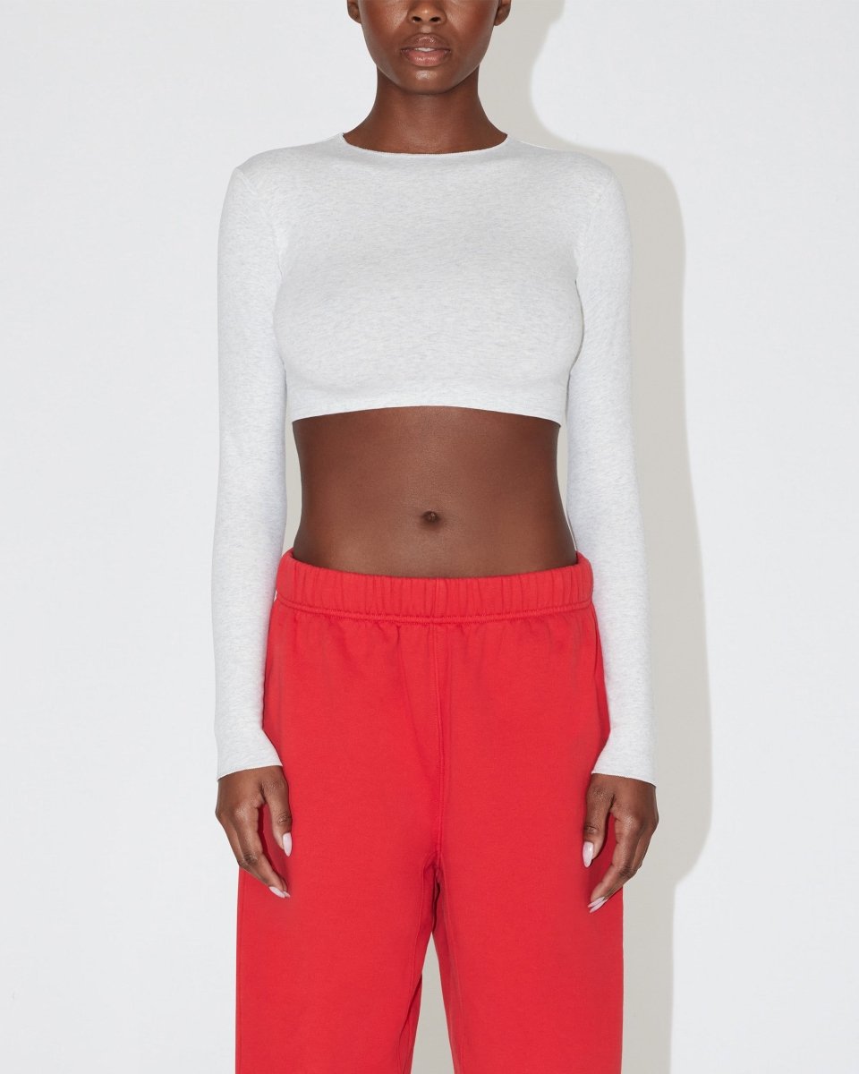 I’ve been wanting one of the Khy wrap tops and when I saw the red back in, I ordered it. It’s a really flattering midriff crop cut and the back is so cute and unique. I think it looks great with a pair of sweatpants or jeans and can be used to add a **** flair to either— there are so many ways to use it to dress up or down an outfit.