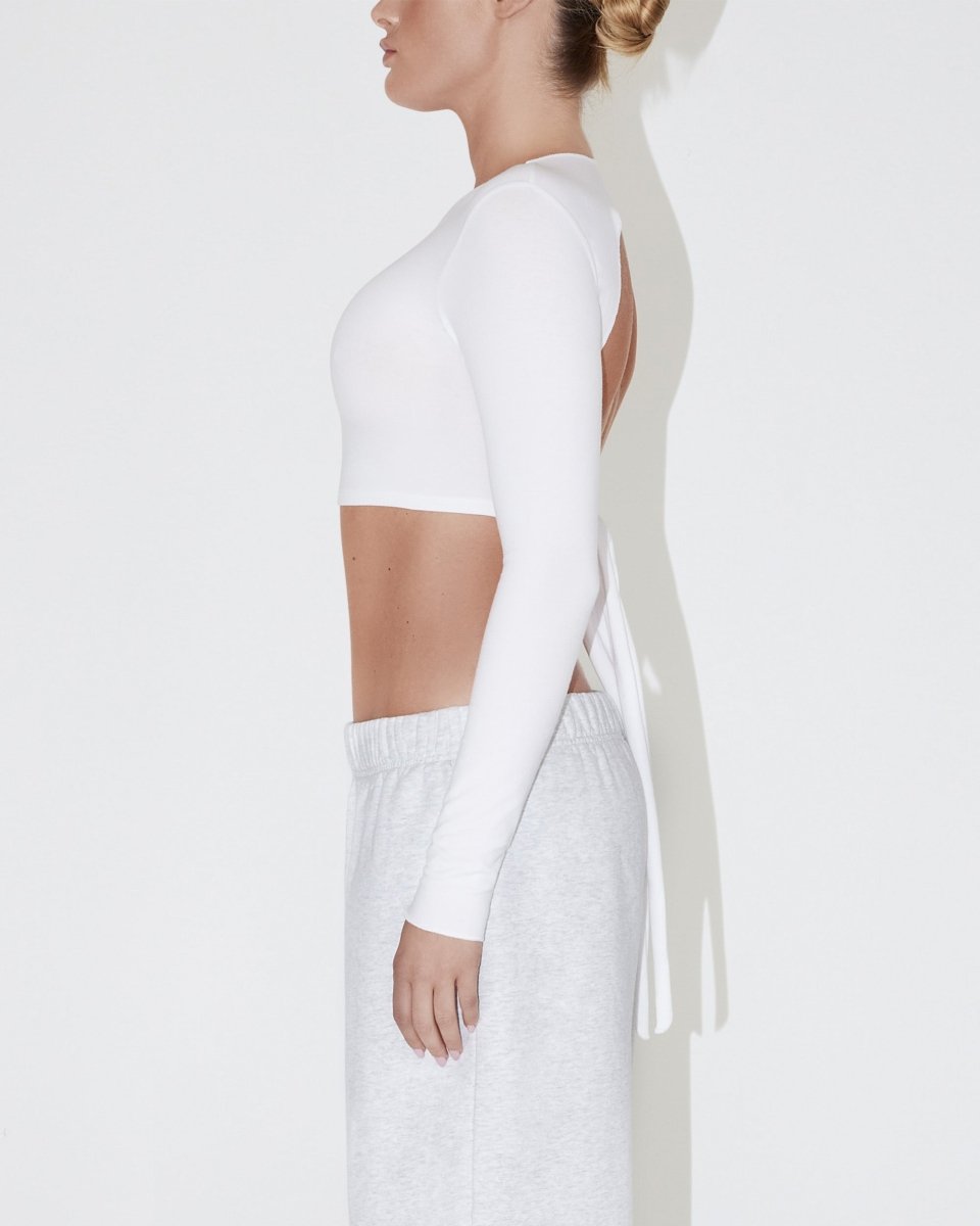 I’ve been wanting one of the Khy wrap tops and when I saw the red back in, I ordered it. It’s a really flattering midriff crop cut and the back is so cute and unique. I think it looks great with a pair of sweatpants or jeans and can be used to add a **** flair to either— there are so many ways to use it to dress up or down an outfit.