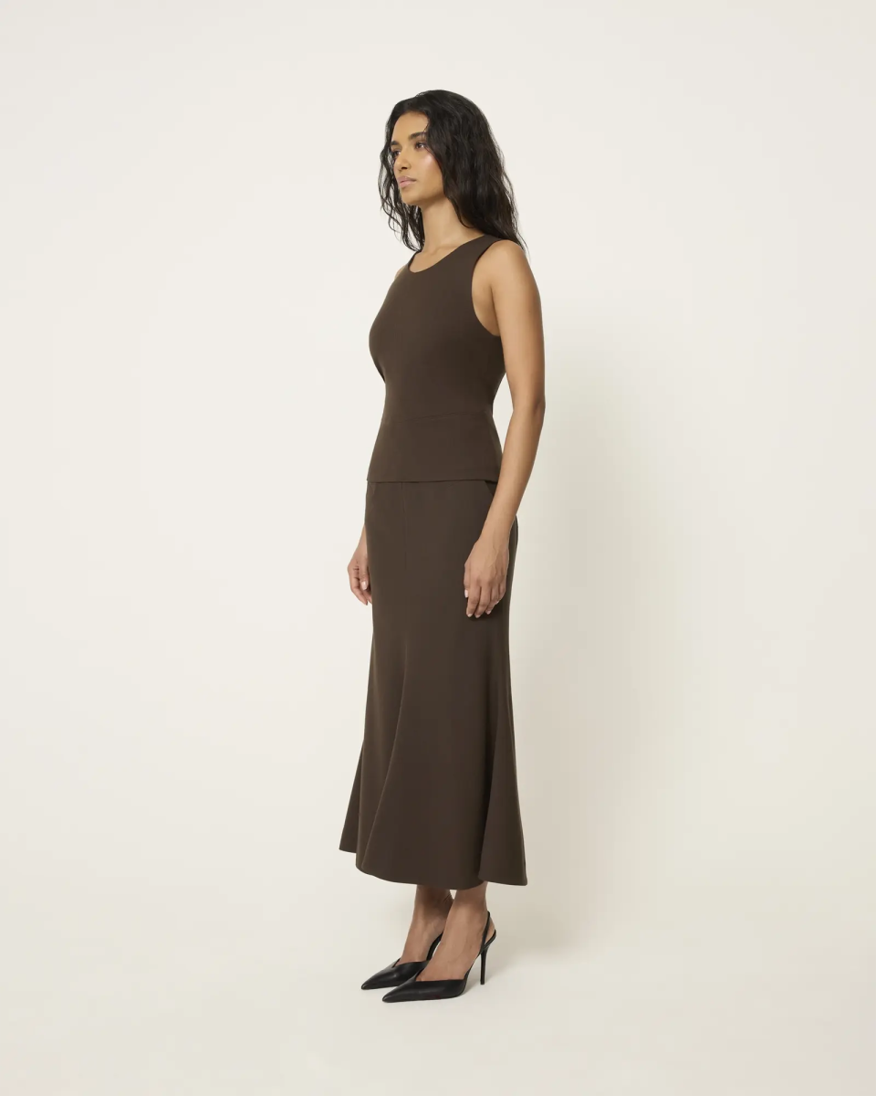 Designed in collaboration with Entire Studios, this is a long tailored skirt with a low rise and a fit-and-flare shape. Made from a soft, brushed, drapey, twill suiting fabric with light stretch.