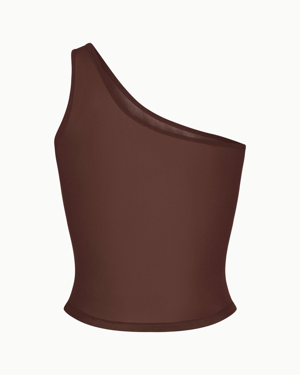 Mesh One Shoulder Top | Chocolate