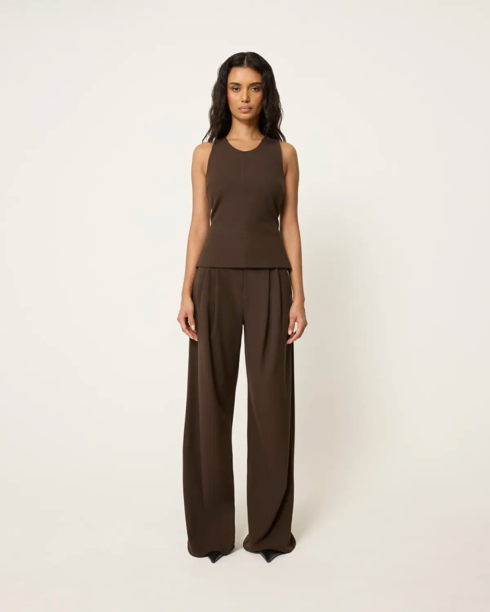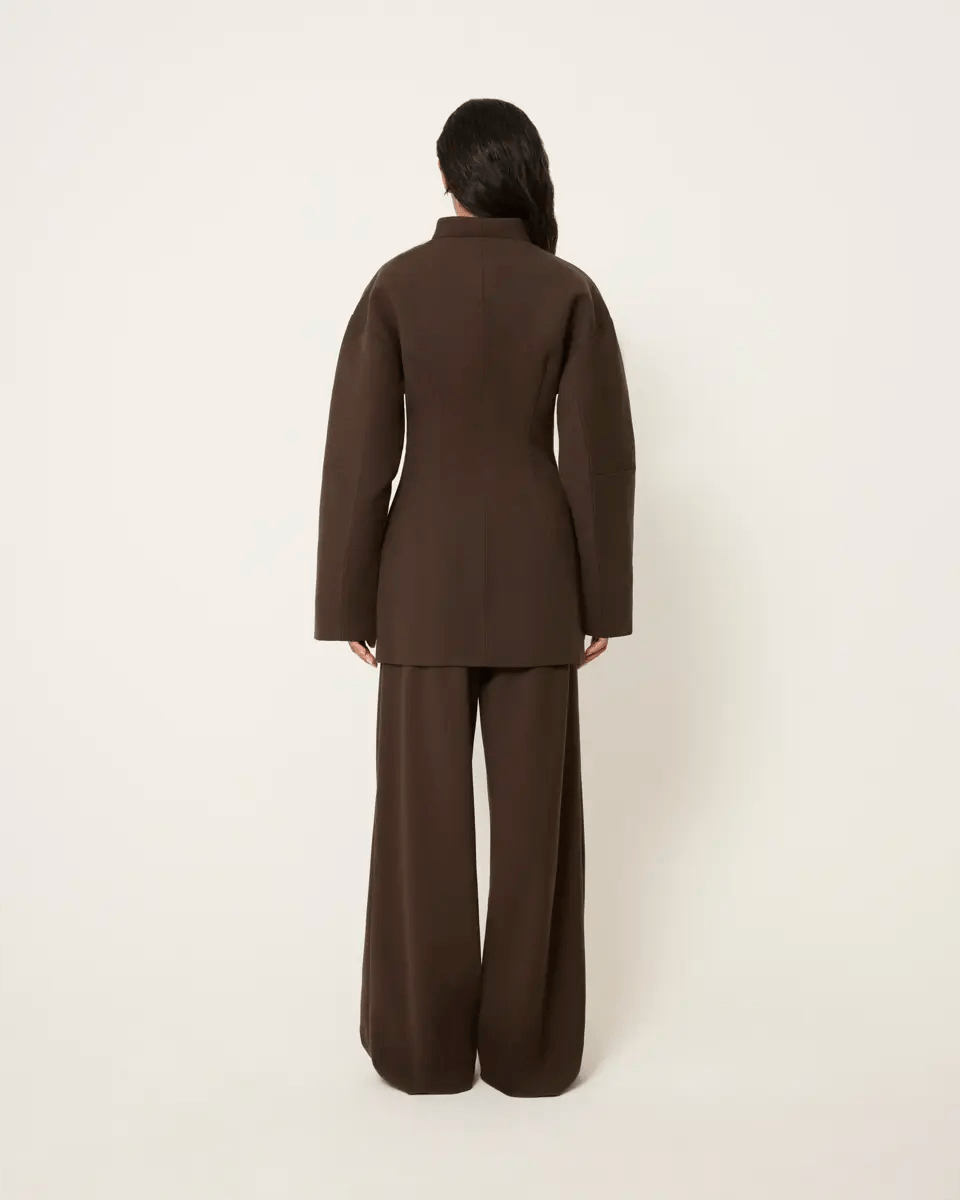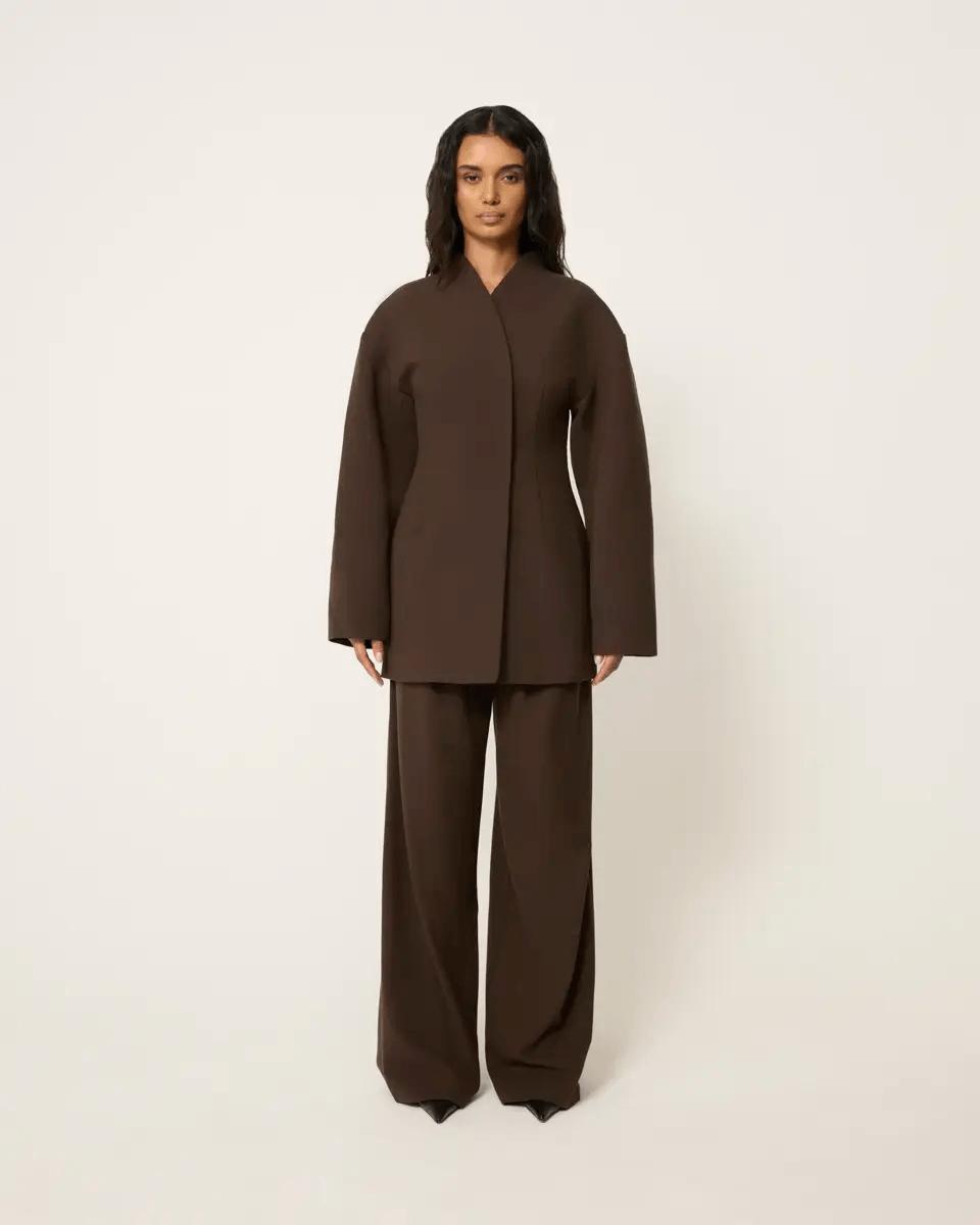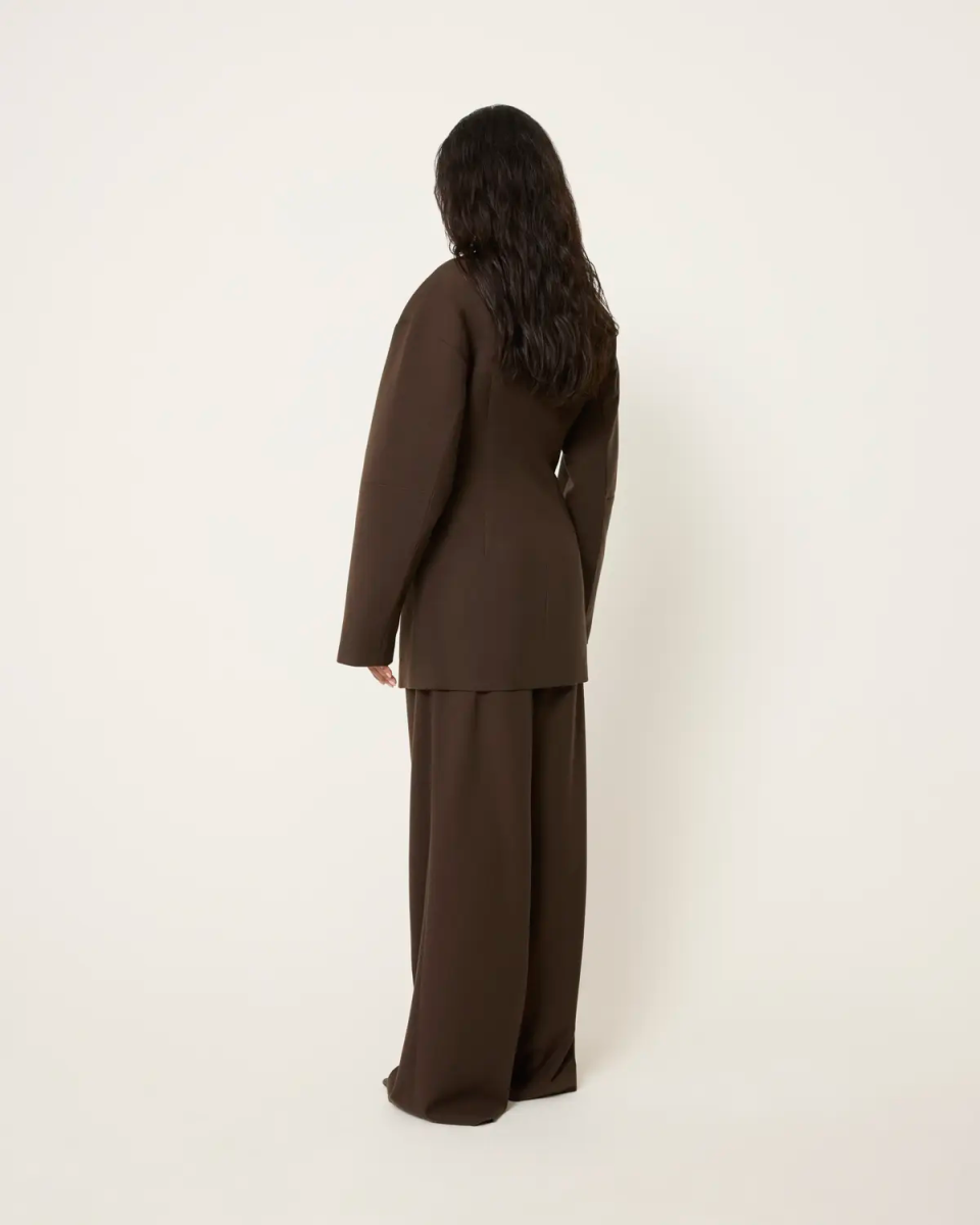Designed in collaboration with Entire Studios, these are wide leg trousers with a low rise and pleated detailing. Made from a soft, brushed, drapey, twill suiting fabric with light stretch.