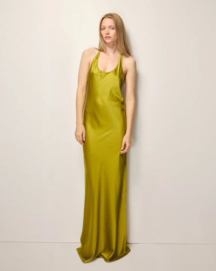 A sweeping silk gown designed for a soft, body-skimming drape that moves beautifully with you. Features an asymmetric neckline that mirrors front and back, a low scoop front, and an adjustable back strap for a customized fit. Effortlessly elegant and intentionally low, it's a modern, fluid silhouette made to stand out.