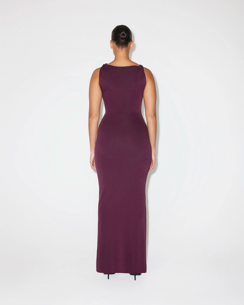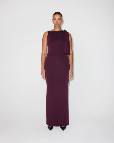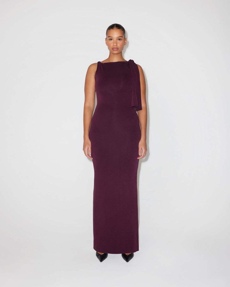 Sueded Stretch Knotted Maxi Dress | Black Cherry