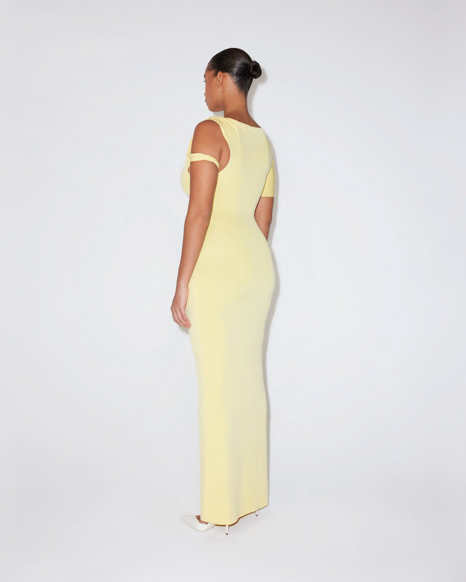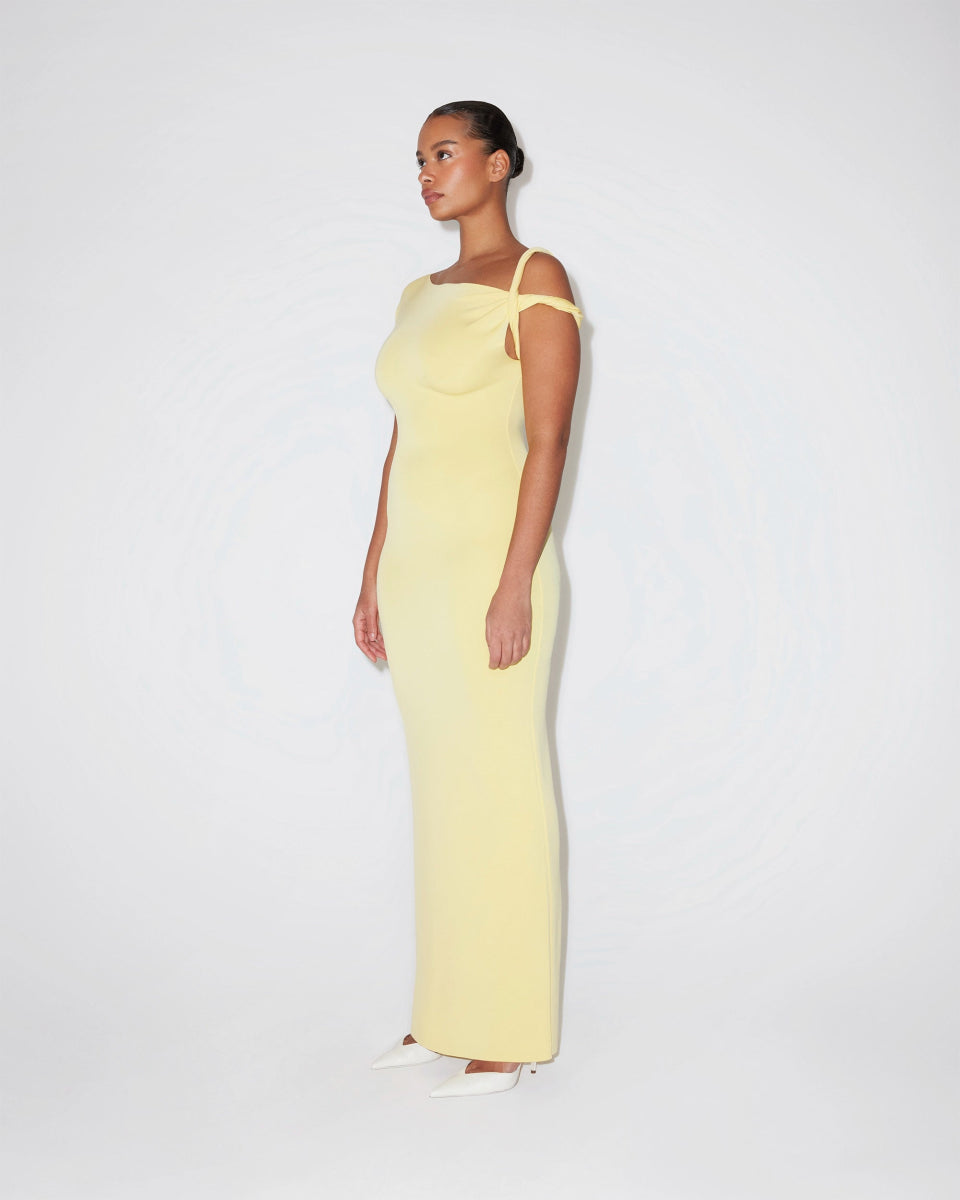 Sueded Stretch Twist Maxi Dress | Butter Yellow
