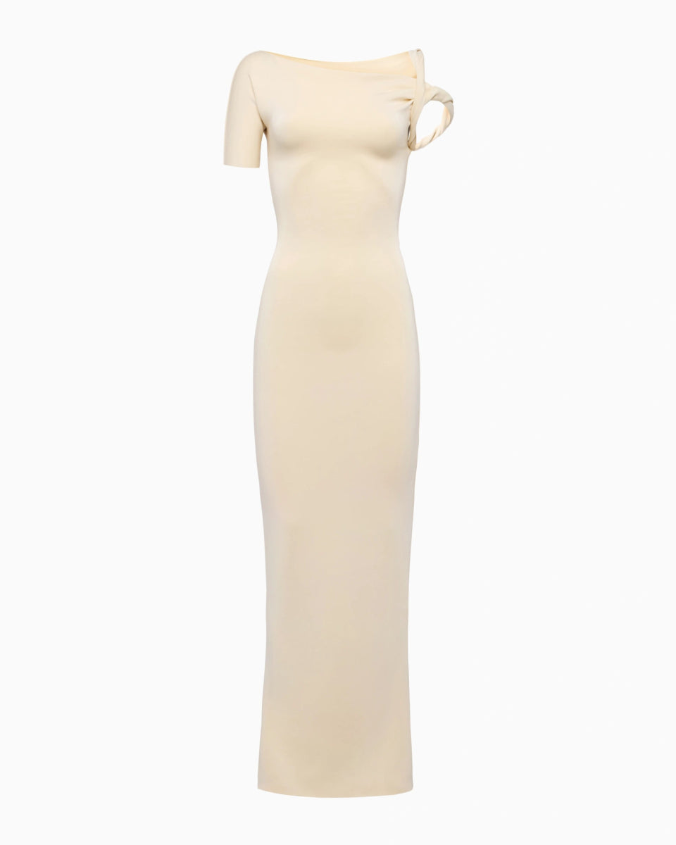 Sueded Stretch Twist Maxi Dress | Steel Grey