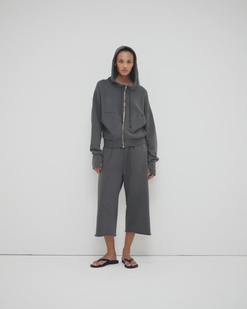Long shorts in heavyweight cotton fleece with a soft, vintage hand-feel, pigment dyed and stone washed for depth of color.