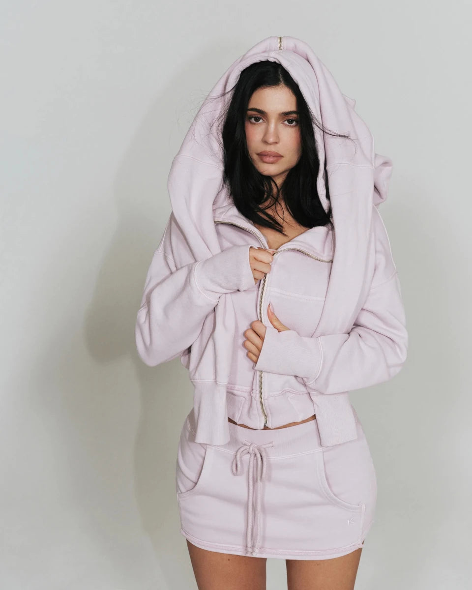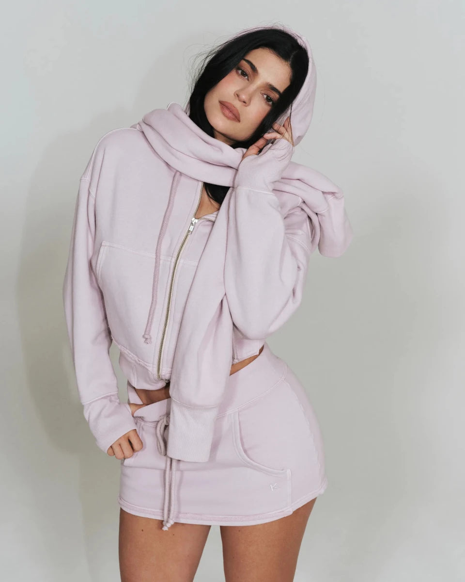Straight silhouette with a ribbed drawstring waistband and a kangaroo-style front pocket.